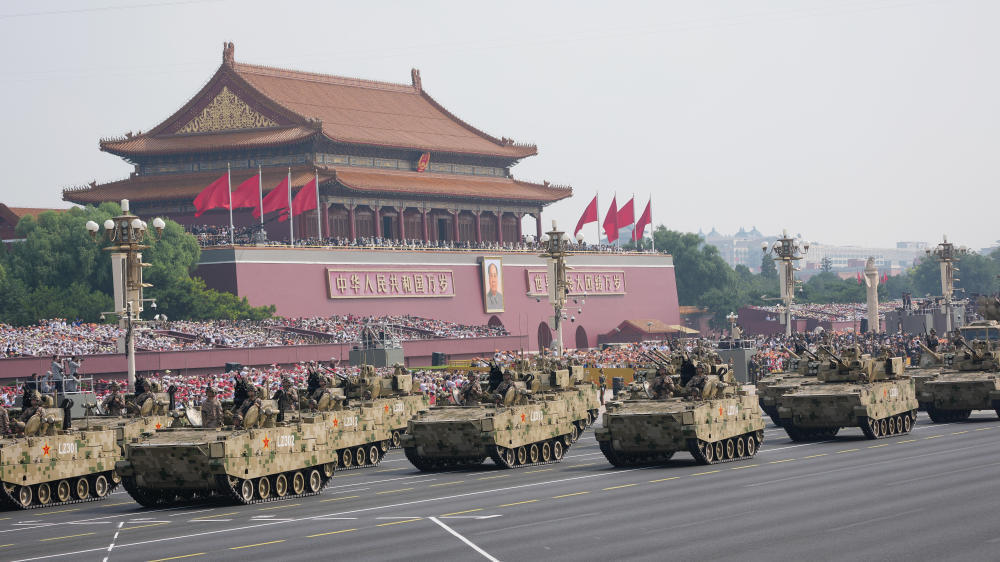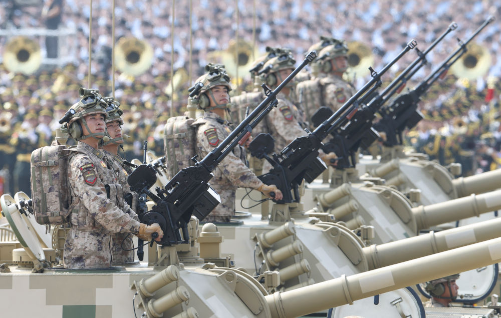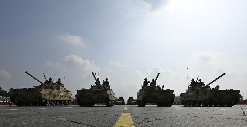 9月3日上午纪念中国人民抗日战争暨世界反法西斯战争胜利80周年大会在北京天安门广场隆重举行这是空降突击方队接受检阅。摄影师:王建华 李尕 杨冠宇 刘大伟 熊琦 肖艺九 李鑫 邢广利。